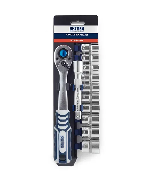 Este juego de bocallaves de 12 piezas con encastre de 1/2" fabricado en Cr-V. Incluye 10 bocallaves milimétricas, una extensión y una llave crique de 72 dientes con mango ergonómico. Descargar Ficha Técnica
