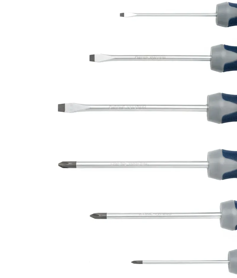 Set de 6 piezas fabricadas en Cr-V, garantiza una alta resistencia estructural y durabilidad. Cuentan con puntas magnéticas para mayor control y mangos ergonómicos de PP & TPR bi-material, diseñados para transmitir un torque eficiente con un agarre firme y confortable. Descargar Ficha Técnica